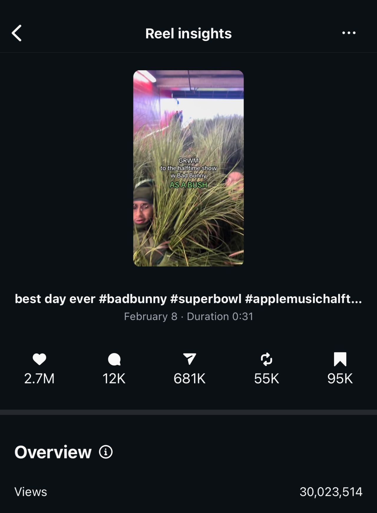 During Super Bowl week, I created and published a short-form video that quickly gained viral traction, reaching over 35 million views across platforms. The content captured real-time energy and cultural momentum around the event, blending storytelling, timing, and visual execution. The project led to features in major media outlets including Time, BBC, NBC, and People Magazine — amplifying reach and positioning the work within a global conversation. This case demonstrates my ability to create culturally relevant, high-impact content that scales organically.